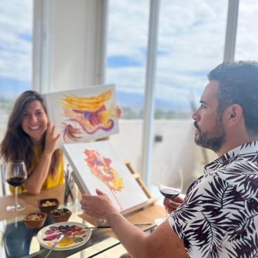 Throughout the experience, we offer suggestions and guidance to help you build your color palette and stimulate your imagination. During the painting session, you will receive step-by-step guidance that allows you to connect with the canvas, let your creativity flow, and develop your own artwork at your own pace.